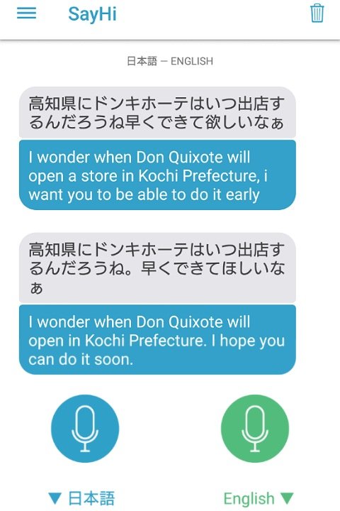 スマホのマイク・テキスト入力からでも日本語⇒英語・英語⇒日本語に訳せる翻訳アプリ「Say Hi」を使ってどこまで正確に翻訳できるのかを検証してみました。